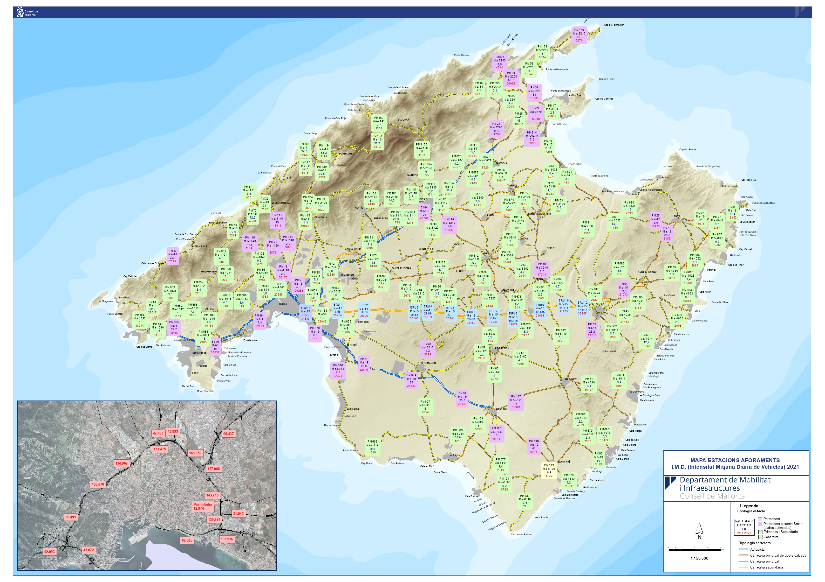 También, tenéis a vuestra disposición un mapa de la red viaria de Mallorca, otro que especifica las limitaciones de tonelaje a las carreteras de la isla, los mapas de la Intensidad Mediana Diaria de los últimos años, así como un visor de incidencias.